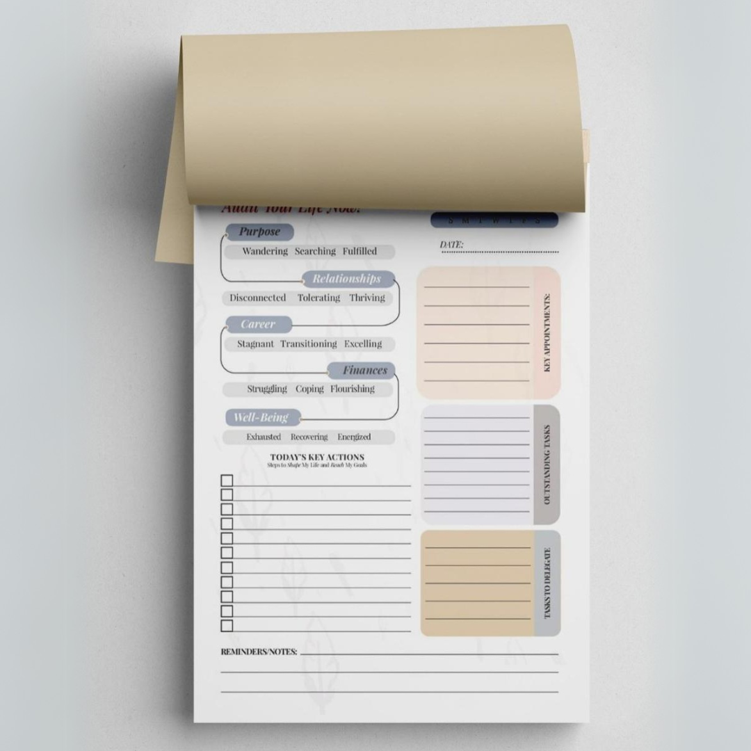 Life gets chaotic, but this notepad helps you stay grounded, focused, and intentional. With a holistic approach to planning, it's perfect for anyone looking to boost productivity while keeping their bigger vision in mind.